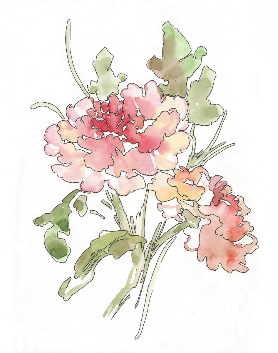 Розовые пионы. Очень нежная акварельная работа по мотивам китайской живописи. Прозрачные зеленые и розовые оттенки подчеркивают красоту цветов. Эта картина не останется не замеченной, украсив Ваш дом в виде постера, одежды, сумки или пузырёчка с шампунем.