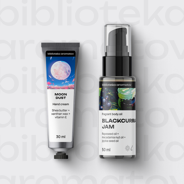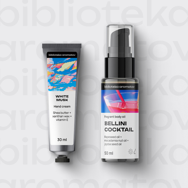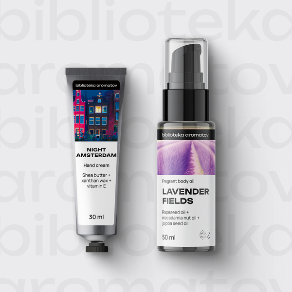 Мини-набор с кремом для рук и маслом для тела от бренда biblioteka aromatov. Насыщенные текстуры крема и масла позаботятся о питании и увлажнении вашей кожи что бы ни случилось!