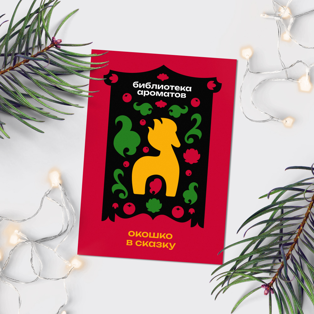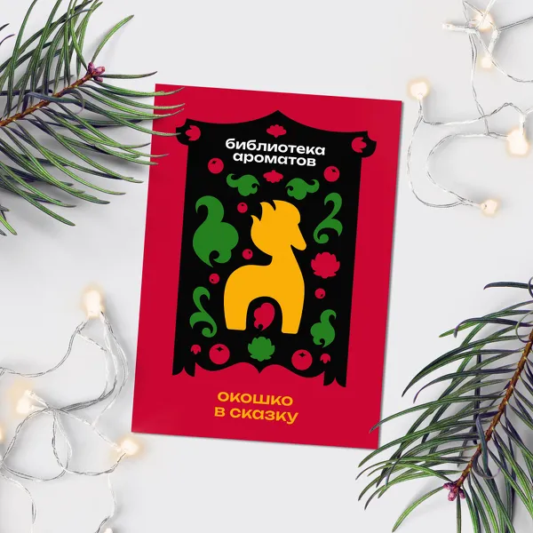 Красная открытка «Окошко в сказку» / Red Postcard «Window into a fairy tale»