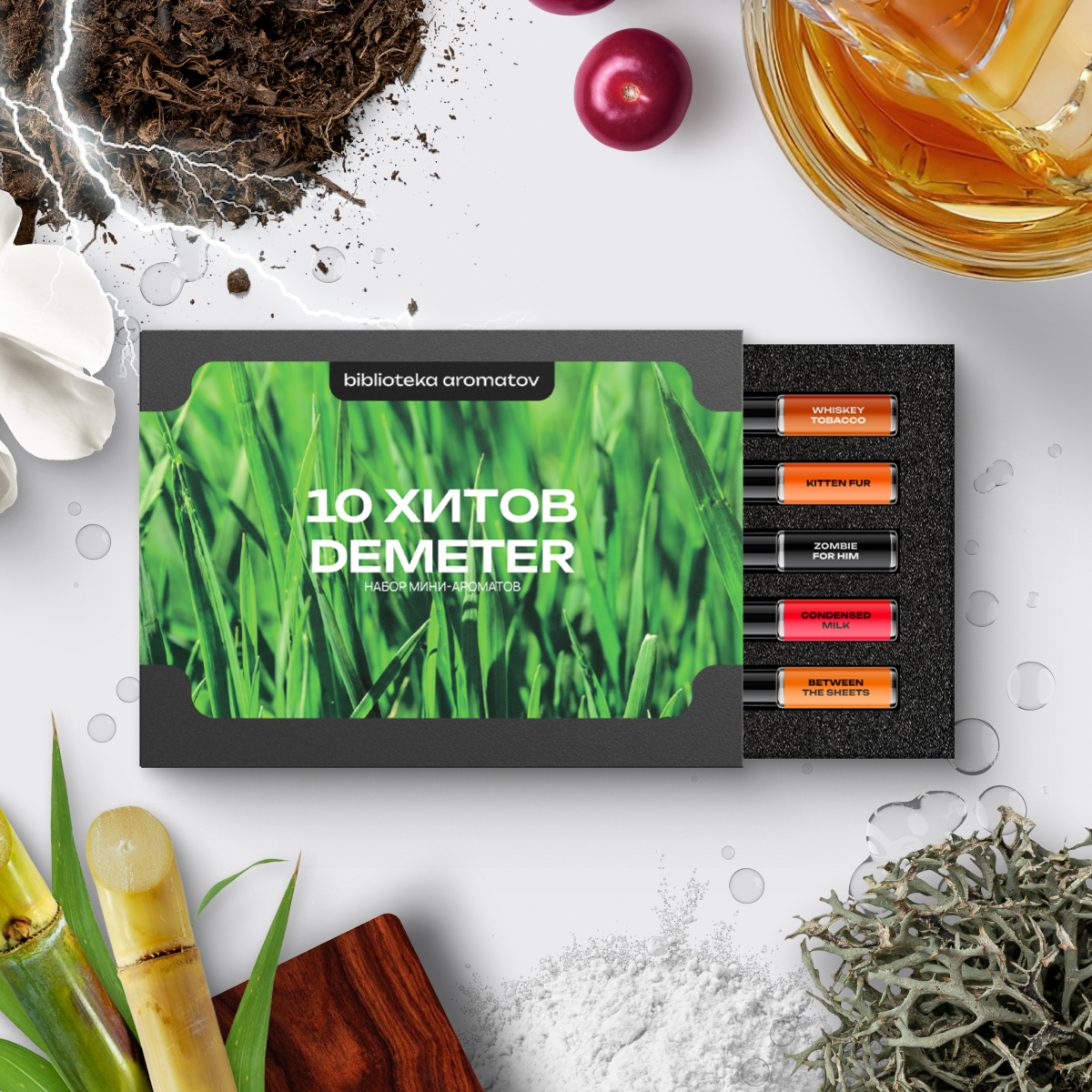 Культовые ароматы Demeter в одном боксе. Гроза, прачечная, шёрстка котёнка — здесь каждый найдёт что-то своё. Каждый флакон — аромат, который вы всегда знали, но не могли объяснить.