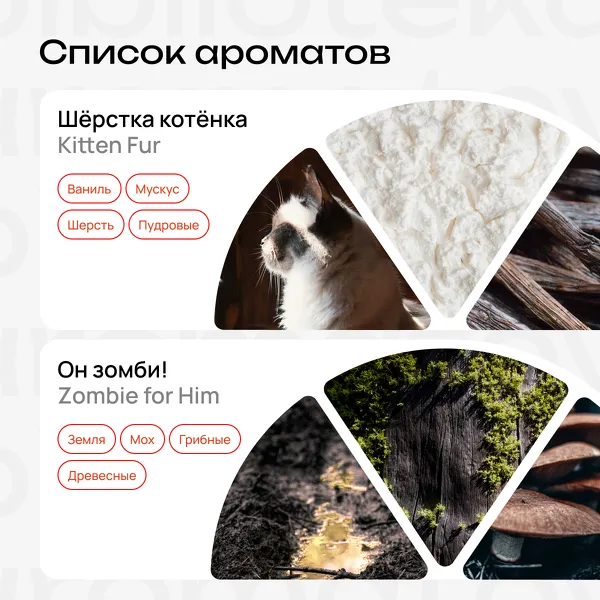 Kitten Fur (Шёрстка котёнка) — теплый мускус и ванильное молоко. То самое место на шее, куда тычется мокрый нос.