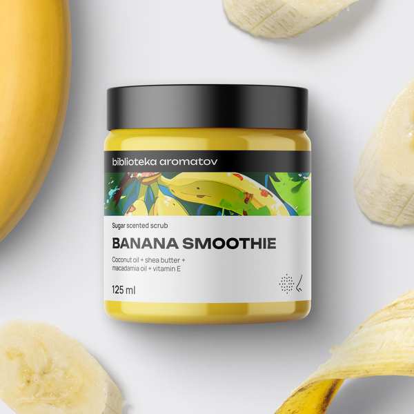 Сочный скраб «Банановый смузи» устраняет сухость и шелушение кожи, авокадо питает кожу, ваниль – способствует устранению растяжек. В составе безопасные компоненты, которые получают из жирных кислот кокосового масла. Они мягко очищают, питают и восстанавливают кожу. Масло ши в составе скраба повысит упругость и эластичность кожи. Разотрите небольшое количество скраба в ладонях и нанесите его массирующими движениями на влажную кожу. 2-3 минуты мягкими движениями втирайте скраб. Затем смойте водой и вдохните фруктовый аромат.