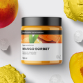 Сочный разрез манго, сладкий сорбет, освежающий холод десерта