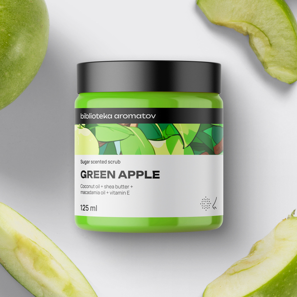 Согласитесь, что от одного названия уже текут слюнки. Когда мы кусаем зелёное яблоко, то сначала морщимся, а потом наслаждаемся освежающей кислинкой. От скраба «Зелёное яблоко» морщиться не придётся. А вот получить удовольствие от мягкой структуры и нежной гладкой кожи — обязательно! Масло ши отвечает за упругость кожи.