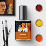 «Я и мои попугаи» — редкий автопортрет, на котором Фрида изобразила себя «весёлой». Белое платье, пёстрые пернатые друзья на плечах будто передают ощущение безмятежности и лёгкости. Детали выдают юмор художницы: пальцы правой руки небрежно держат сигарету, а в глазах сияют искры. Тем не менее, лицо Фриды по-прежнему очень серьёзно и противопоставляет себя насыщенным краскам полотна. В аромате картины мы передали баланс строгости и нежности — ноты табака и ванили символизируют сильную, но ранимую натуру.