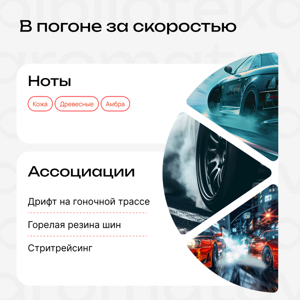 Эрон-дон-дон! Встречайте самый шустрый аромат с хулиганским характером, ревущим шлейфом и Вином Дизелем в главной ноте. Композиция пропитана нотами известного фильма «Форсаж». Внутри флакона запахи горелой резины, нагретого бетона и труб, машинного масла. Смелый аромат немного горчит и переносит на гоночную трассу, где царит резкий дрифт, оставляя характерный след на асфальте.