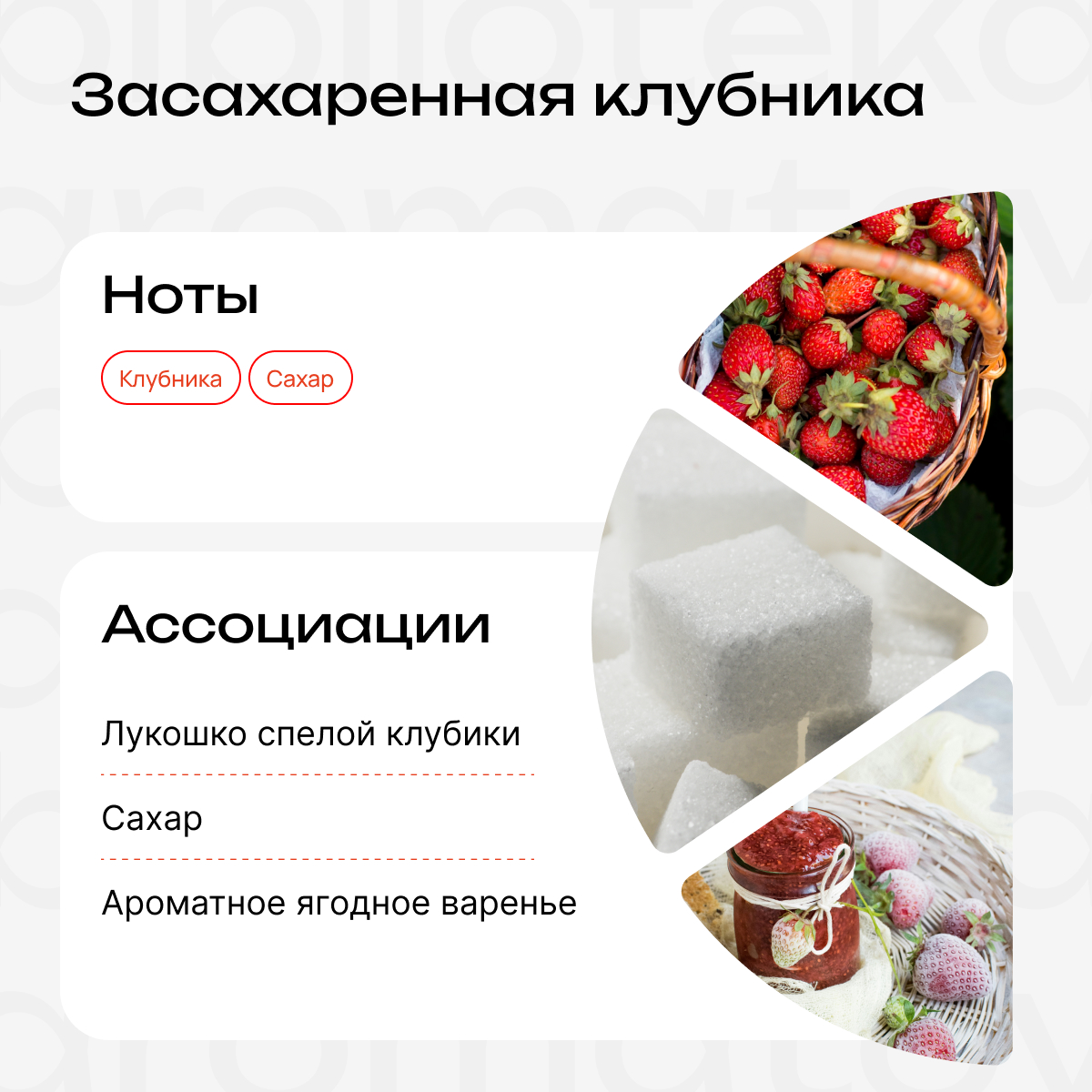 По детским воспоминаниям лето у бабушки было переполнено приятными впечатлениями. Среди них мелкое жульничество на клубничных плантациях, когда не дожидаясь подачи на стол, мы съедали всю спелую красную ягоду прямо с куста. И очень зря. Ведь бабушка любила засахарить клубнику в банках, чтобы в любое время года побаловать нас летним сладким вкусом. Мы законсервировали садовые ягоды во флаконе «Засахаренная клубника», который напомнит о шаловливом детстве.