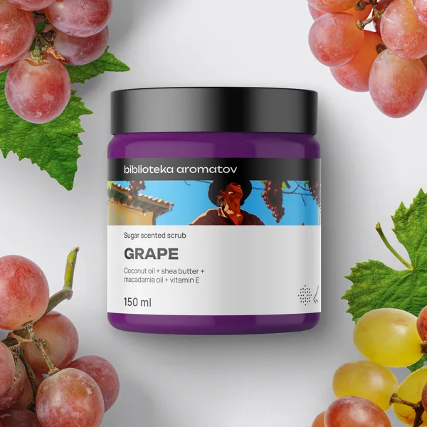 Представьте солнечный виноградник на южном острове, залитый лучами полуденного солнца. Лоза, усыпанная тяжелыми гроздьями, источает густой, сладкий, пьянящий аромат. Тугие ягоды переливаются рубиновым цветом и нахально манят к искушению. Бросить всё и отдаться простому наслаждению можно уже сейчас, нанеся скраб для тела «Виноград», пропитанный элитным гедонизмом.