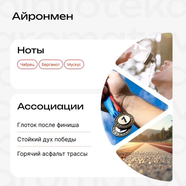 Это вкус финиша. Горячий воздух, врывающийся в лёгкие после последнего рывка. Он начинается с резкого, бодрящего всплеска, сигнала к старту, фокуса в глазах. Но его душа — это стойкий дух победы, жар мускуса, смешанный с пылью трассы и упрямством чабреца. В этом аромате нет места сомнению, только ритм сердца и метраж под ногами. Он для тех, кто соревнуется не с другими, а с самим собой, превращая своё тело и дух в совершенный инструмент.