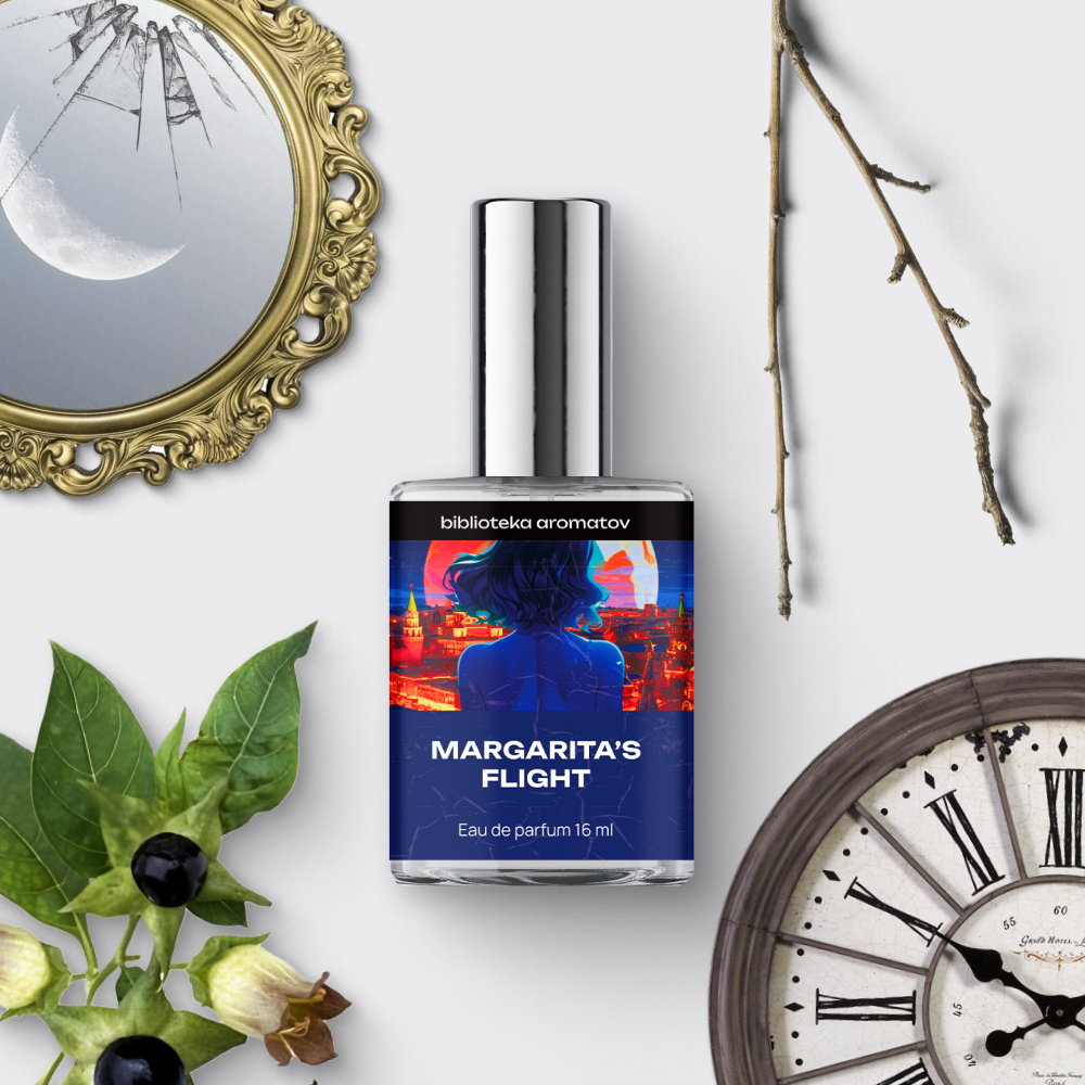 Захотелось пофантазировать о волшебном креме, благодаря которому Маргарита обрела силу ведьмы и неистово взмыла над Москвой. Какой у него аромат? Наверняка в креме были ноты безумно дорогих и редких французских духов, доступных только элите. Мускусную томность украшают ноты пыльной лаванды и нероли. А что придало магию мази в золотой коробочке, которую подарил Маргарите Азазелло? Густой сантал и горькие брызги лимона отвечают за мистику в аромате. Нанесите пару капель «Полёта Маргариты», пробудите в себе ведьминскую силу и станьте королевой вашего бала жизни.