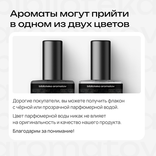 Чёрный вам к лицу. В аромате переплетаются эстетика викторианской готики, криминальных драм 40-х и Средневековья. Ноты чёрного угля, бетона и чернил — это нуар сквозь века.