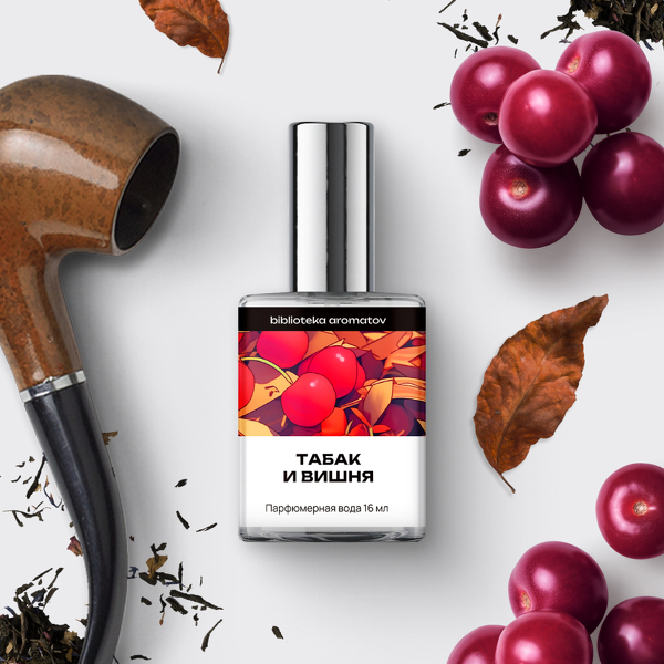 «Табак и вишня» — танго внутри флакона. Она — яркая, сочная, сладкая вишня, которая падает в объятия партнёра. Он — бархатистый, смелый, обволакивающий и дымный табак, который уверенно ведёт свою партнёршу. Каждый из них мог бы стать полноценным ароматом, но притяжение оказалось сильнее. Поэтому они с первого вдоха увлекут вас за собой в тандеме спелой вишни и терпких листьев табака. Просто доверьтесь чувственности аромата — и окружающие не смогут устоять против шлейфа, который раскованно станцует вокруг вас.