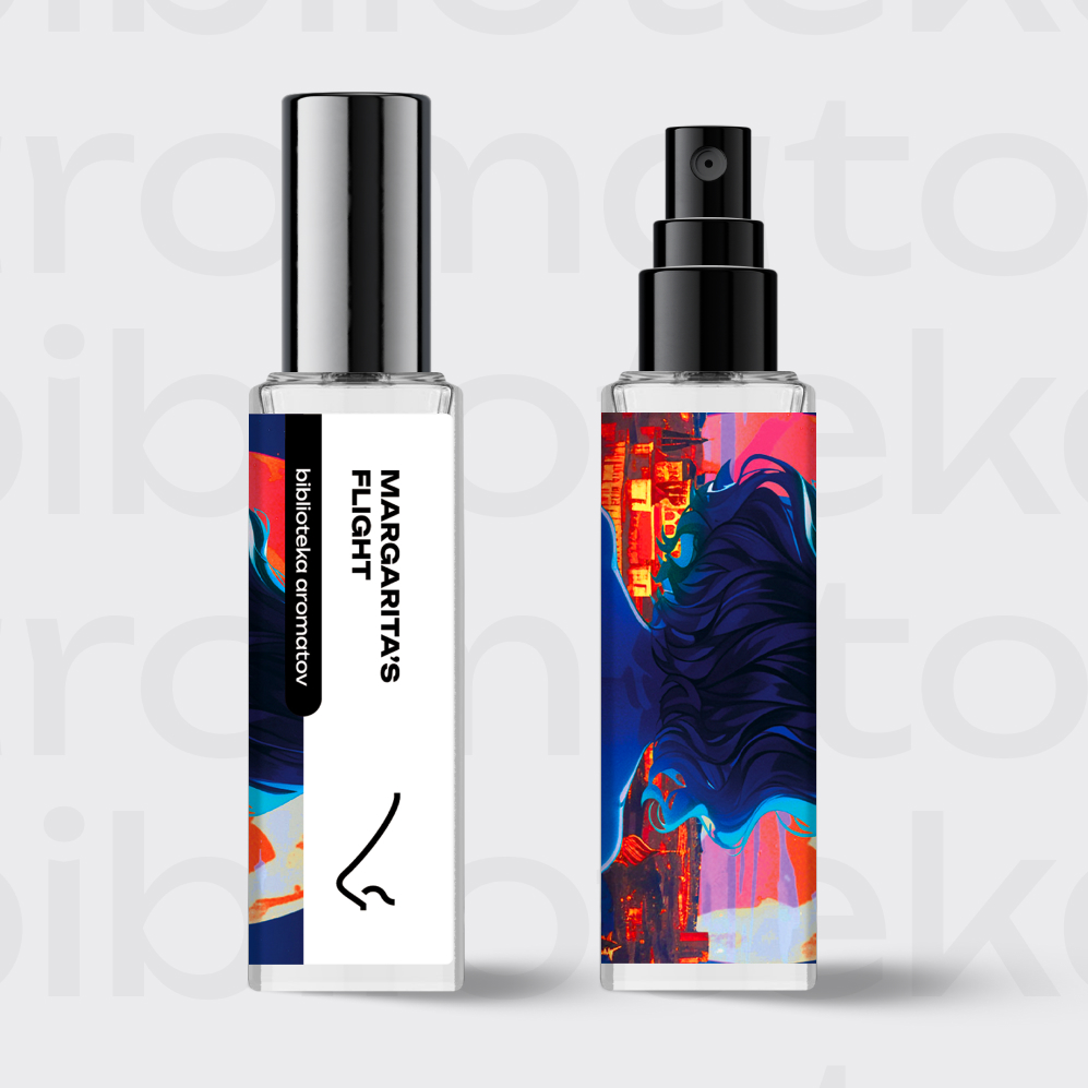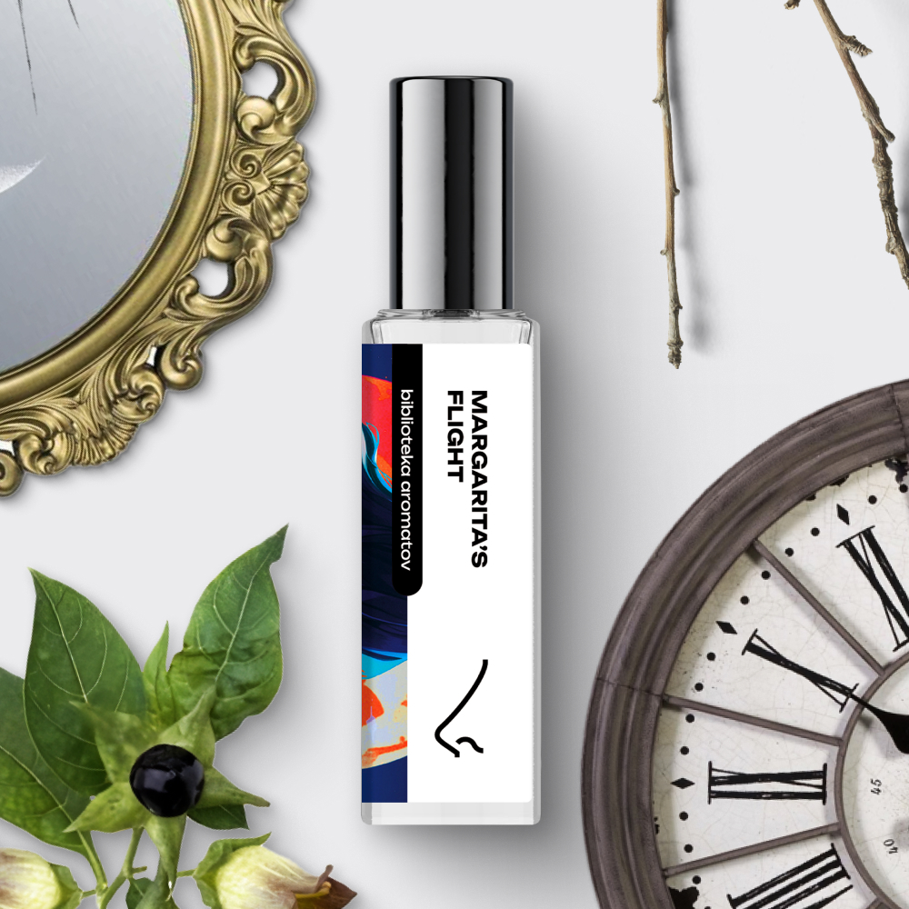 Захотелось пофантазировать о волшебном креме, благодаря которому Маргарита обрела силу ведьмы и неистово взмыла над Москвой. Какой у него аромат? Наверняка в креме были ноты безумно дорогих и редких французских духов, доступных только элите. Мускусную томность украшают ноты пыльной лаванды и нероли. А что придало магию мази в золотой коробочке, которую подарил Маргарите Азазелло? Густой сантал и горькие брызги лимона отвечают за мистику в аромате. Нанесите пару капель «Полёта Маргариты», пробудите в себе ведьминскую силу и станьте королевой вашего бала жизни.