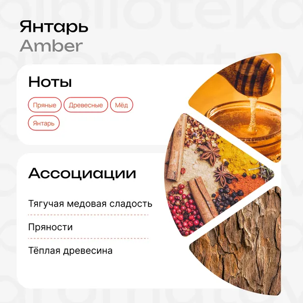 «Камень зело честен, един от драгих камней тако именуем, златовиден вкупе и сребровиден» — так описывали янтарь на Руси. У Петра I была своя легендарная Янтарная комната. Теперь настал ваш черёд заполучить янтарь, но в таком виде, в котором царю-императору даже и не снилось! Духи с ароматом янтаря — это тёплый, лёгкий медовый аромат с лёгкими пряными нотками. Кстати, если вы решили всё-таки найти исчезнувшую Янтарную комнату — отправляйтесь в Калининград, там есть музей янтаря, или в Большой Екатерининский Дворец (под Петербургом), там эту комнату воссоздали в первозданном виде. Но знайте, наш аромат Amber — это уже находка!