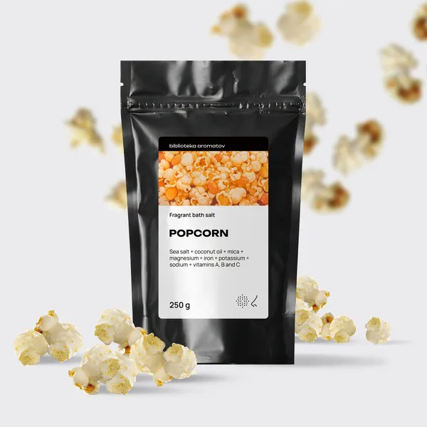 Расслабиться в ванной с ведёрком любимого попкорна? Легко! Воздушный аромат соли для ванн окутает карамельными грёзами, экстракт кукурузы в составе успокоит тело: он способствует восстановлению и питанию кожи, защищает от воздействия извне. Масло кокоса сделает её мягче, горячие ароматные пары раскроют поры и отставят сладкий шлейф.