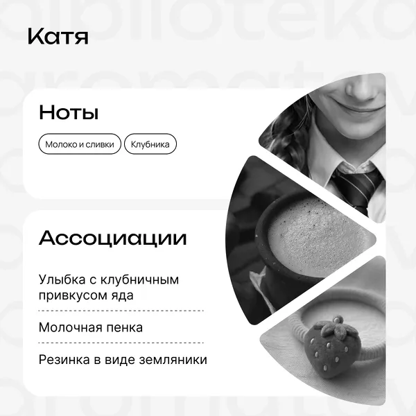 Послушала аромат в шоуруме и пока принюхиваюсь, сначала вообще напомнил клубнику в какао-пудре, но после 15 минут появился акцент клубничной жвачки (как хубабуба). Не сильно чувствую что-то молочное, потому что сам по себе аромат кисленький, но если принюхиваться пробивается сливочность. В следующий раз точно возьму для коллекции