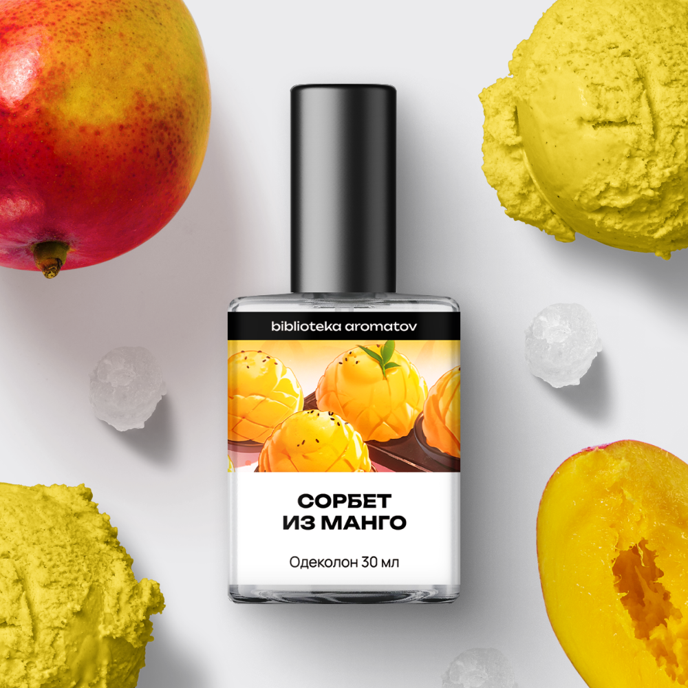 «Сорбет из манго» напоминает о летнем путешествии на остров, где солнце ласкает кожу, а запахи фруктов наполняют воздух сладостью и экзотикой. Основные ноты манго дополняются нежными акцентами цитрусовых и нектарина, создавая энергичный и свежий аккорд.