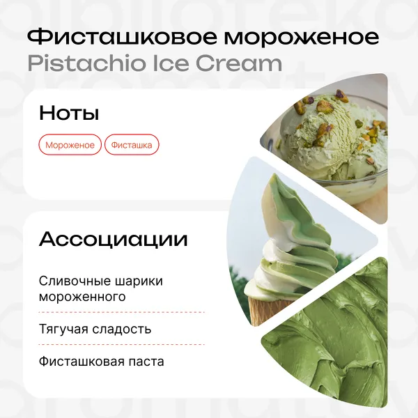 Все знают, что фисташки чрезвычайно полезны, а фисташковое мороженое – это к тому же ещё и очень вкусно. А теперь только представьте, что этот вкус стал вдруг ароматом. Прохладный в летнюю жару и, наоборот, согревающий напоминанием о лете в зимнюю стужу, аромат «Фисташковое мороженое» станет вам добрым спутником в любое время года.