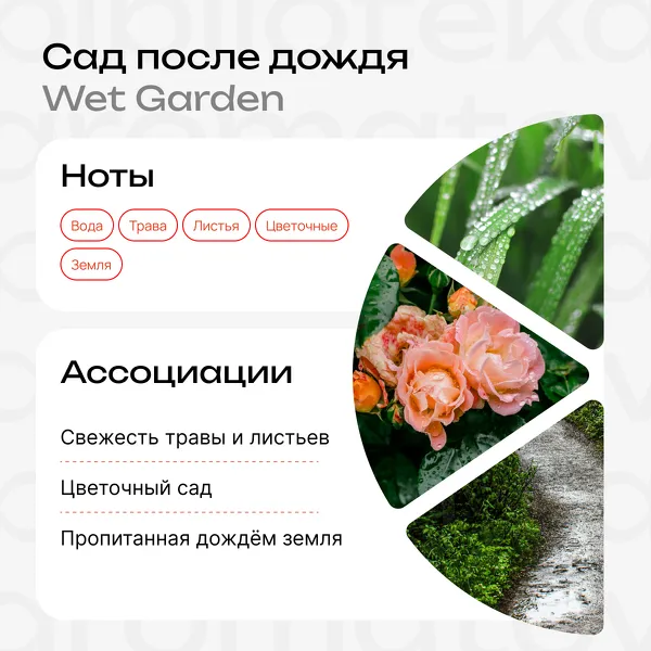 Чудесный свежий аромат, в котором переплелись дождь и обещание солнца, приятная прохлада и лёгкая сырость, запахи свежей травы и опавших листьев — а также все времена года, кроме, пожалуй, снежной зимы — вернёт вам воспоминания о нежных свиданиях под дождём, на которые вы чуть было не опоздали, но всё-таки пришли как раз вовремя.