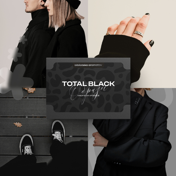 Чёрный — цвет силы, элегантности и тайны. Это манифест в чёрном. Он подчёркивает индивидуальность, не просит внимания, а молча берёт его. В боксе собраны 5 ароматов, каждый раскрывает грань тьмы. Вместе они создают образ Total Black — безупречно цельный, дерзкий и глубокий.