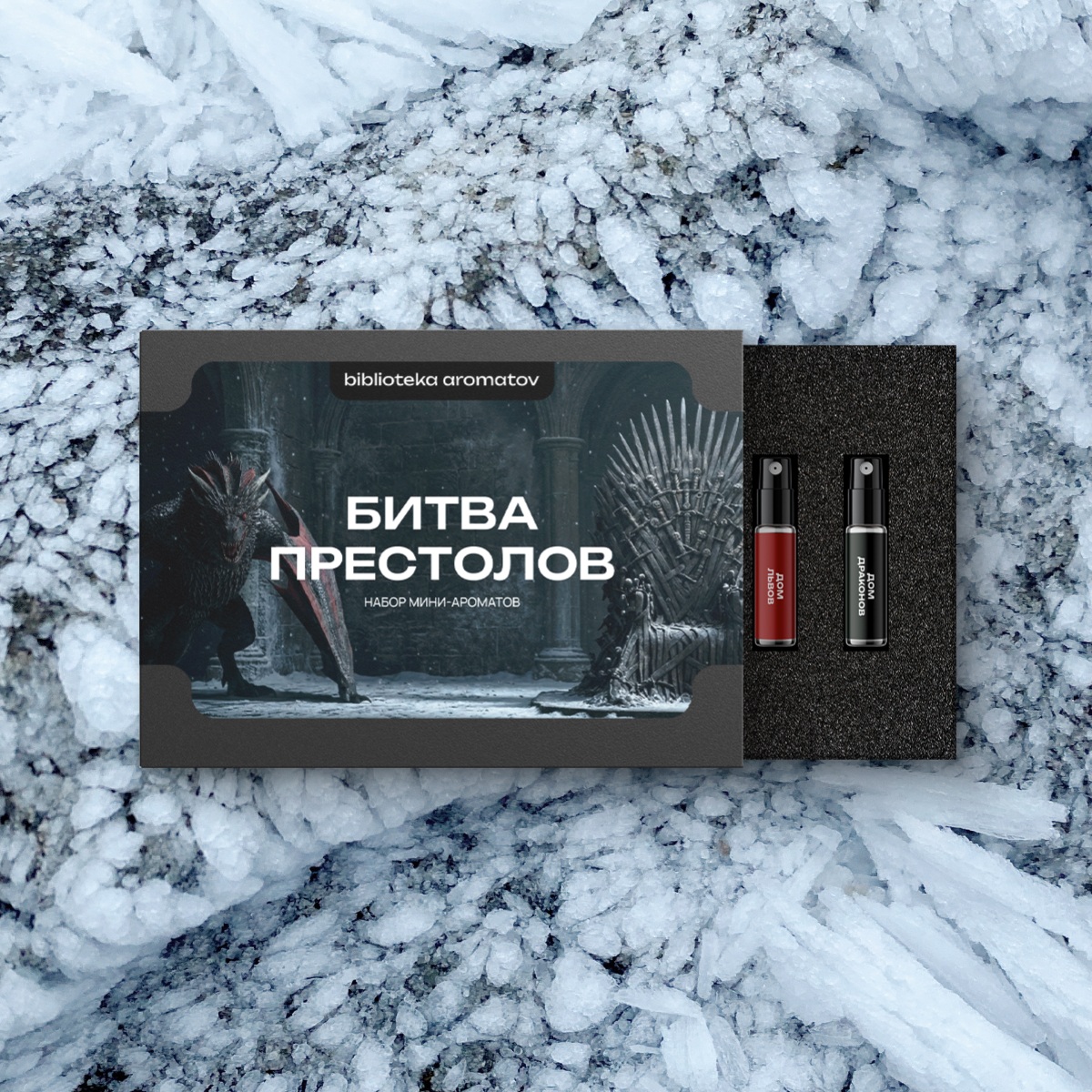 Королевства, которые расколоты интригами, клятвами и жаждой власти. Здесь слова могут убить, а молчание — спасти. Здесь каждый выбирает сторону, и лишь один трон остаётся целью всех путей. Бокс «Битва престолов» — это коллекция из пяти ароматов, посвящённых великим домам Вестероса. От ледяной суровости Севера до золотого блеска Утёса Кастерли. Откройте флакон, и вы услышите голоса домов, которые ведут свою битву за престол.