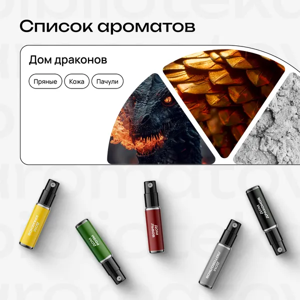 Дом Драконов — пряный дым, раскалённая кожа, земляной пачули. Дыхание древней Валирии.