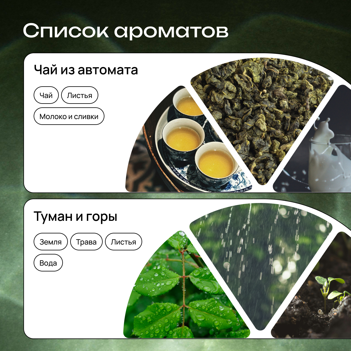 - «Чай из автомата» с молочными, зелеными, чайными нюансами,