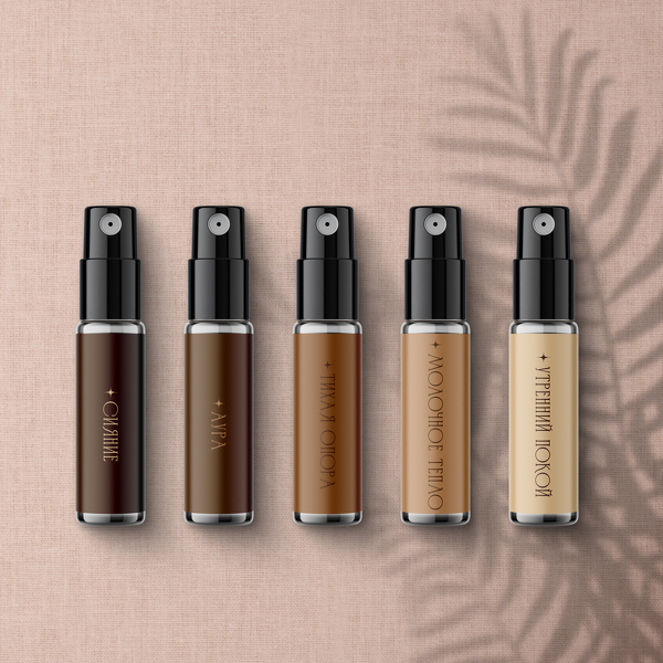 В наборе 5 ароматов-состояний, которые дарят ощущение тишины и внутреннего равновесия. «Сияние» с медовой сладостью фиников, «Аура» с дымным аккордом ладана, «Тихая опора» с цитрусовой свежестью и сандалом, «Молочное тепло» с обволакивающим улуном и «Утренний покой» с нежным запахом чистой кожи. Уют и расслабление в каждом флаконе.