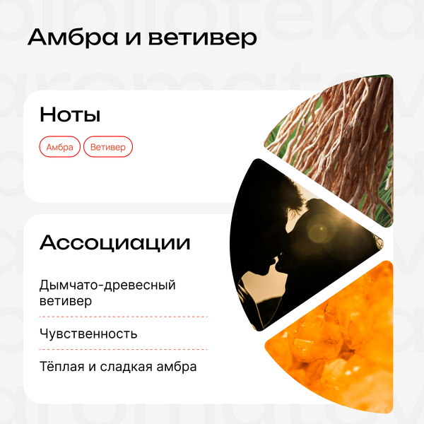 «Амбра и ветивер» — её сила. Тепло и глубина, благородство и уверенность. Этот аромат — её вечерний силуэт, строгий и завораживающий, как шлейф чёрного платья.