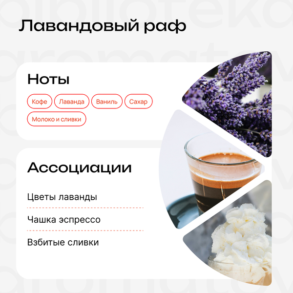 «Лавандовый раф» — её улыбка. Только нежный аромат сиреневых лепестков, окутанных сладким кофейно-сливочным облаком. Аромат раскрывает нежность за изысканным образом.