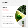 «Абсент» — травяной, зелёный, с гурманскими нотами — это её коктейль в флаконе: горький, интригующий, слегка алкогольный акцент в её образе. Аромат, который обещает «галлюциногенное» настроение, пусть и только в воображении.