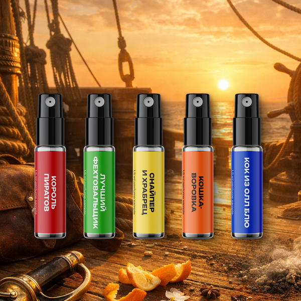 Откройте флакон, и вы услышите, как скрипят реи корабля, как смех разносится над волнами, и как горит в груди огонь Великой Эры Пиратов. Команда в сборе. Поднимайте якорь.