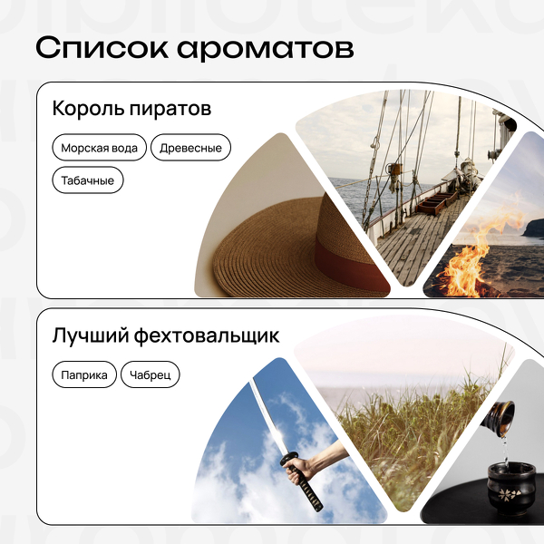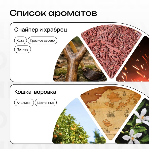 Снайпер и храбрец — грубая кожа походной сумки, благородное красное дерево палубы и россыпь пряностей, скрывающих самую искреннюю улыбку под маской.
