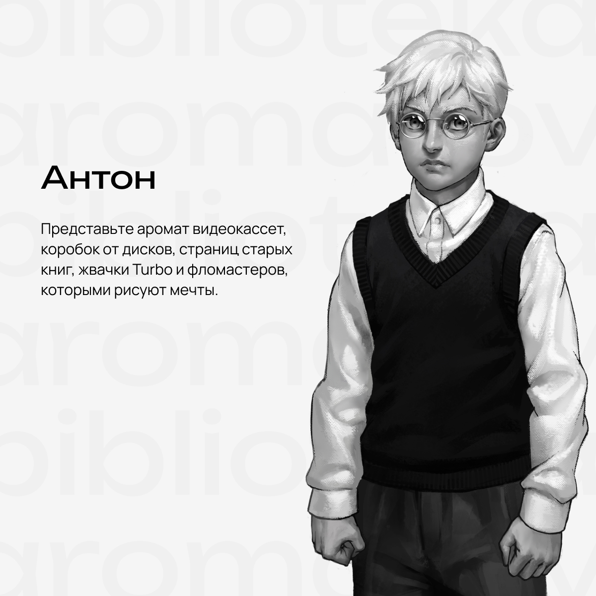 Антон — мир, где пахнет видеокассетами, коробками от дисков, страницами старых книг, жвачкой Turbo и фломастерами, которыми рисуют мечты.