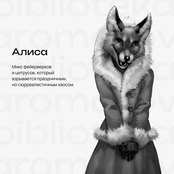 Алиса — микс фейерверков и цитрусов, который взрывается праздничным, но сюрреалистичным хаосом.
