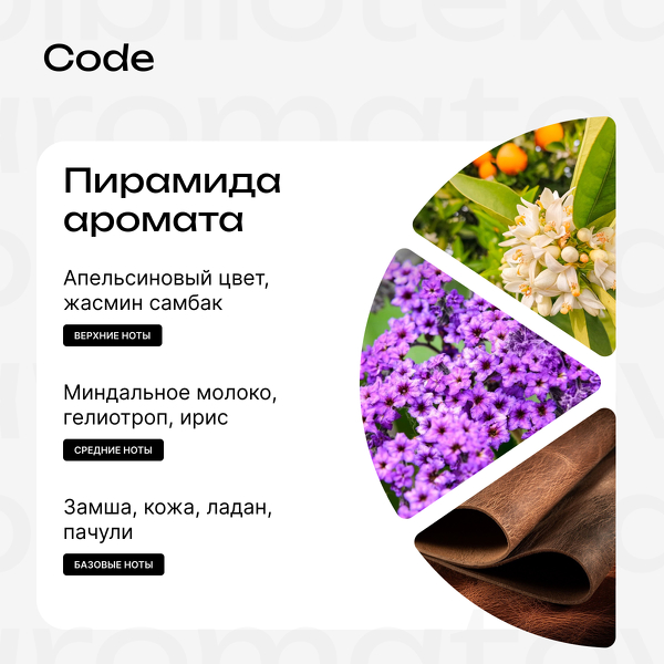 Томный, мистический, согревающий Восток на осень и зиму. Как только он касается кожи, раскрывается сад с жасмином и апельсиновым цветом. Пудровый ирис и миндальное молоко — пастельное сердце аромата, замшево-кожаный шлейф с привкусом ладана — настоящая загадка. Кашемировая сказка со сладким настроением, которая обнимет холодным вечером.