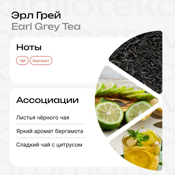 Листья чёрного чая, яркий аромат бергамота, сладкий чай с цитрусом
