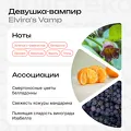 Девушка-вампир (Elvira’s vamp) — до смерти красивая композиция! Ароматные акценты: в сердце аромата произрастает устрашающее сочетание ядовитой беладонны, орхидеи Дракулы и табака. В свою очередь, их окружает нежная мадагаскарская ваниль, плющ и кожура мандарина. Многим этот аромат кажется похожим на запах сладкого винограда сорта Изабелла.