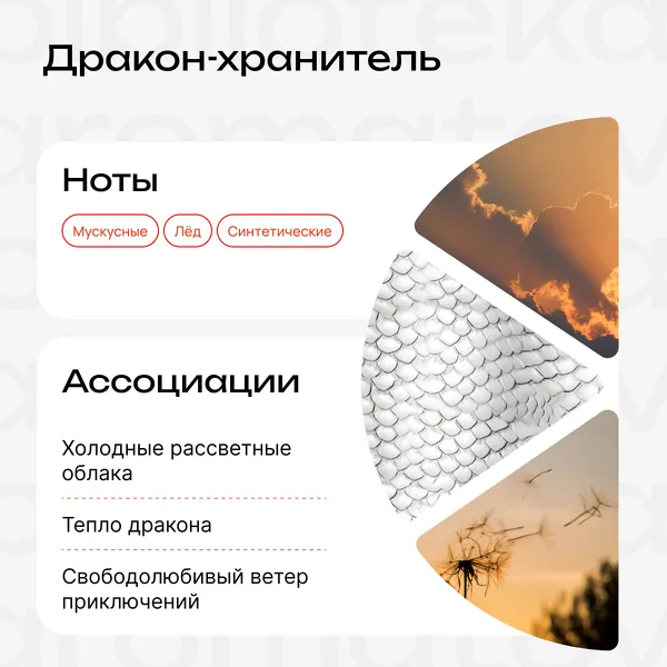 Откройте флакон, назовите его настоящее имя Нигихаями Кохаку Нуси и освободите от оков злой ведьмы. Выпустите на волю хозяина янтарной реки и вашего хранителя. Вдохните аромат и поднимайтесь ввысь. Летите навстречу свободе, прошлому и будущему, в котором каждый помнит своё настоящее имя. Рассекайте вместе с драконом пушистые и холодные озоновые облака, которые оставят на коже морозный и свежий шлейф. Но холодно не будет, потому что вас согреет тепло вашего нового друга.