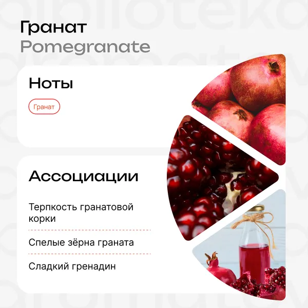Терпкость гранатовой корки, спелые зёрна граната, сладкий гренадин