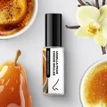 Это сливочный шик на коже, взгляд через плечо и удовольствие, которое тает медленно и остаётся в памяти. Аромат начинается с тонкой карамельной корочки, которую только что подожгли горелкой, чуть хрустящей, слегка подкопчённой, тёплой. А под ней — нежнейший ванильный крем и сочное пюре из груши.