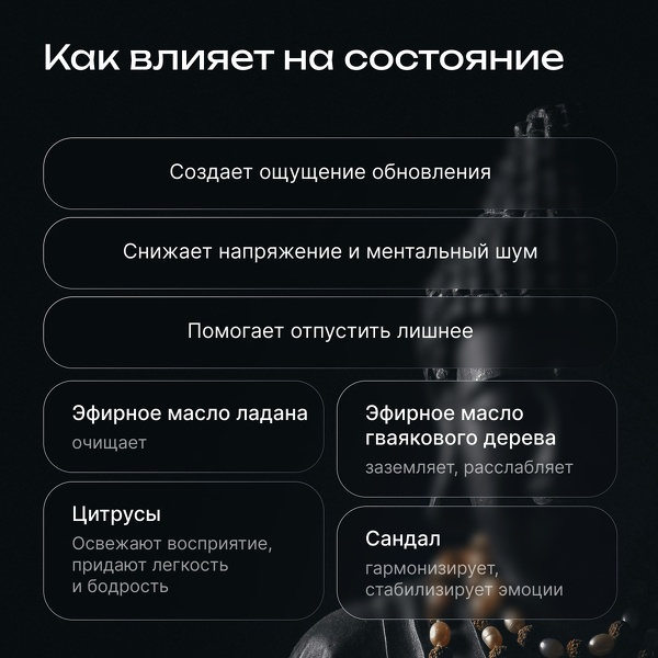 Аромат трансформации. Звучит легко и глубоко одновременно, как дыхание в момент перехода: от напряжения к принятию, от мысли к чувству.