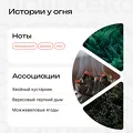 Аромат открывается холодной свежестью можжевельника — как глубокий вдох морозного воздуха перед тем, как войти в тёплый дом. Дымные ноты напоминают о потрескивающих дровах и старых печах, вокруг которых когда-то собирались на Святки, чтобы делиться историями и загадывать желания. Хвоя добавляет ощущение лесной тишины и зимнего покоя, словно за порогом раскинулся заснеженный еловый бор.