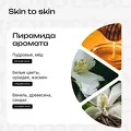 Интимность как дыхание. «Skin to skin» — это тактильный аромат-объятие: невесомая пудра и мёд, букет белых цветов и прочная, тёплая основа ванили, древесины и сандала. Он стирает дистанцию, оставляя только тепло близости. Аромат, стирающий границы, превращающий пространство в невесомую, тёплую ауру.